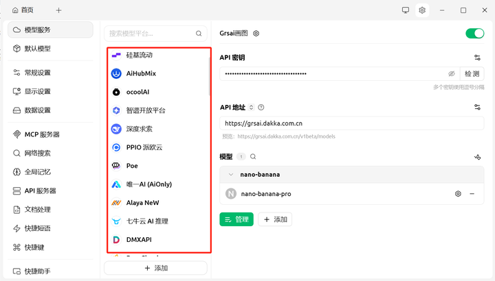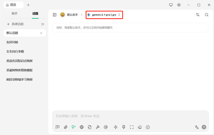 配置完成后,你就可以用 Cherry Studio 使用 Gemini 3.1 pro,如果你有批量生图的需求 Cherry Studio 就不适合你,每次都需要等待对话结束才可以继续提问,你可以用 Grsai 提供的开源免费批量生图工具。