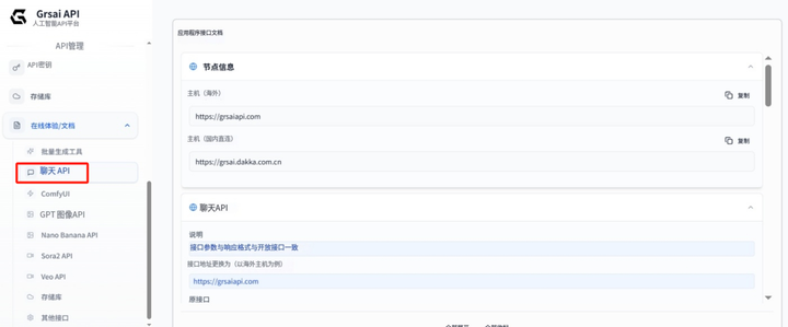 - 更换后的接口地址:https://grsai.dakka.com.cn/v1/chat/completions(以国内直连为例)