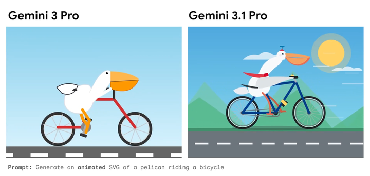 只需一句简短的文字描述,Gemini 3.1 Pro 能根据文本指令为网站生成 CSS/JavaScript/SVG 代码形式的动画 SVG 。以前需要以视频或 GIF 形式呈现的动画,现在可以使用 3.1 Pro 直接以代码形式生成,开发人员可以轻松调整细节也可以直接应用。这些矢量动画无限缩放依然锐利无比,文件体积极小,远轻于传统视频或 GIF,完美适合网页嵌入。