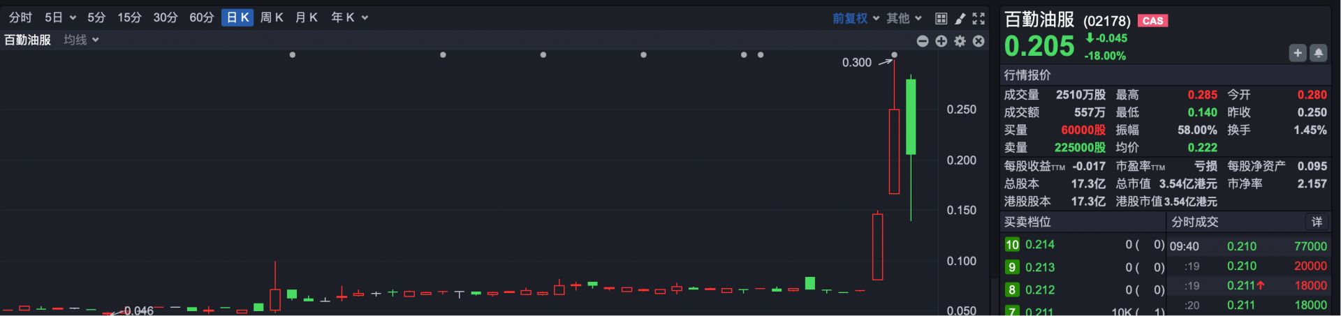 截至发稿,百勤油服 (HK02178) 一度跌超 40%,中港石油跌超 30%,MI 能源跌超 14%,山东墨龙跌超 10%。此外,中石化油服跌超 9%,中石油、中海油、中石化 「三桶油」 全线回落。