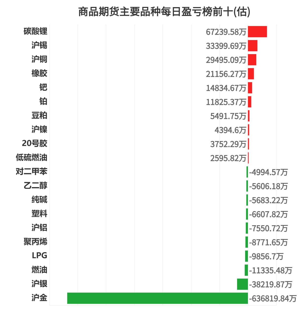 今日商品期货上榜机构席位中碳酸锂盈利第一,为 67239.58 万元。