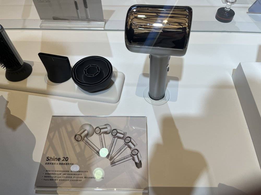 在 MOVA 带来的展品中,还有一个不那么起眼,但令笔者印象深刻的产品是它家的新品吹风机 Shine 20,它可以对机身与用户的距离、还有家庭角色进行识别,自动调节风力大小。