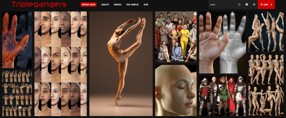 Triplegangers 专注于销售 「人体的数字孪生」 模型素材,这些高清 3D 模型照片来自真实人类扫描,价值巨大。