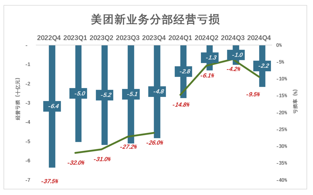 对新业务而言,少亏就等于赚。美团整体业绩大为改观: