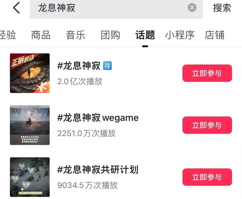 截止至上线当天,《龙息:神寂》 在抖音平台拿下了超 2 亿次播放的话题热度。