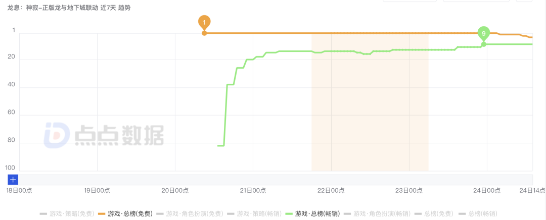 2、大 DAU 产品扎堆:目前 iOS 畅销榜中,腾讯网易米哈游旗下多款大 DAU 产品持续占据榜单前列。而 《龙息:神寂》 也是一款亟需拿下大量下载量的重磅产品,但在多个 TOP 级产品的挤压中,若想突围而出,并非一件易事。