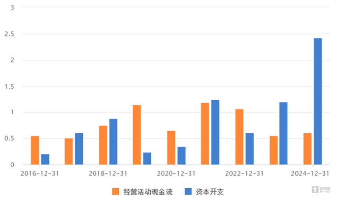 需要注意的是,公司利润承压亦源自其成本增长,尤其资本开支翻倍,2024 年购建固定资产、无形资产和其他长期资产支付的现金达到 2.42 亿元,为 2023 年的两倍,主要为 2020 年的 IPO 募投项目研发中心军民两用火箭生产能力建设项目,2024 年形成 1.1 亿元在建工程。