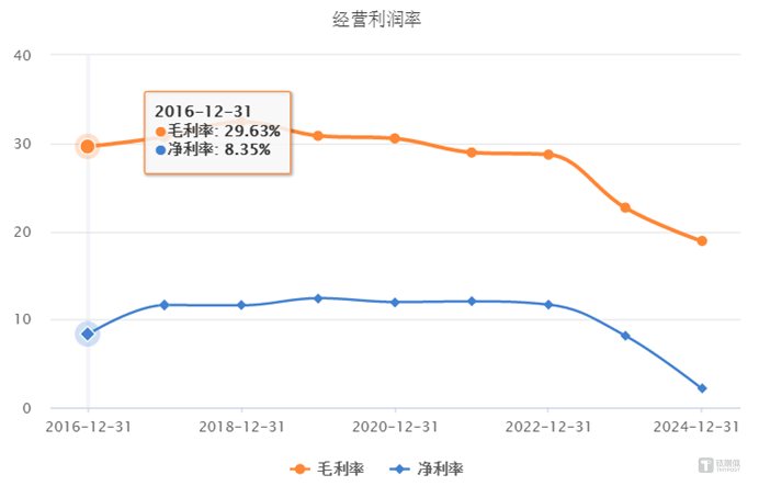 公司经营性现金流余额为 6036 万元,略优于去年,但仍仅为 2021 年/2022 年的 60% 左右,回款情况并未彻底好转。同时其盈利指标持续下行,经营利润率承压明显,净利率仅为 2.12%,毛利率跌至 18.87%。