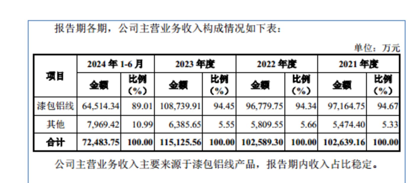 从业务上看,兢强科技主要拥有漆包铝线和其他业务,具体如下: