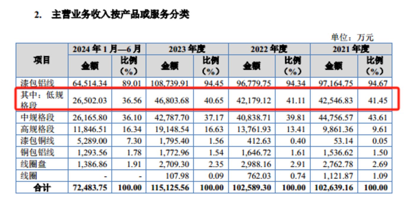 而漆包铝线由主要分为低、中、高规格段,具体情况如下: