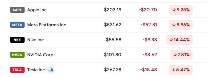 3 日收盘时,苹果、Meta、耐克、英伟达及特斯拉股价受重挫。