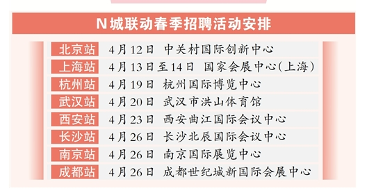 据南方网消息,为进一步增强引才聚才质效,根据 「百万英才汇南粤」 行动计划总体部署安排,教育部和广东省委、省政府将于今年 4 月中下旬在北京、上海、杭州、武汉、西安、成都、长沙、南京等 8 个城市举办 「百万英才汇南粤」N 城联动春季招聘活动。各站活动将由广东省领导带队,组织广东省市的企业、学校、医院、科研院所等用人单位参加,拿出有竞争力的薪酬岗位,主动上门邀约优秀高校毕业生。