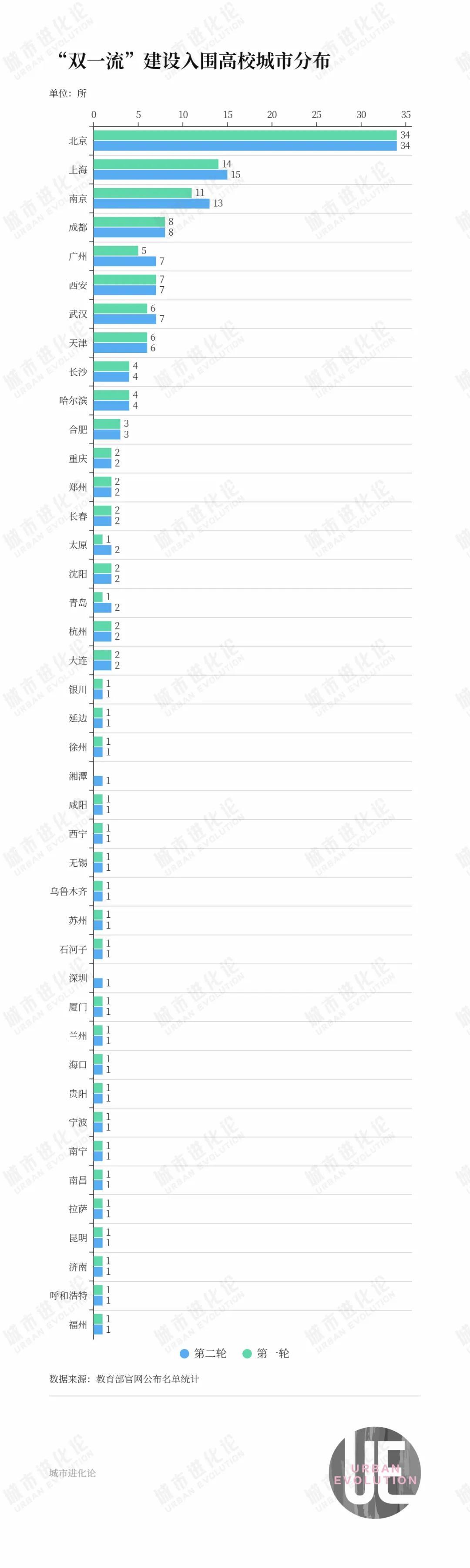「北上」 抢人,广东的首选为何是这八座城市?从高校建设水平来看,一目了然。目前全国共有 147 所 「双一流」 建设高校,分布最密集的十座城市中,有七座城市入选,分别是北京、上海、南京、成都、西安、武汉、长沙。