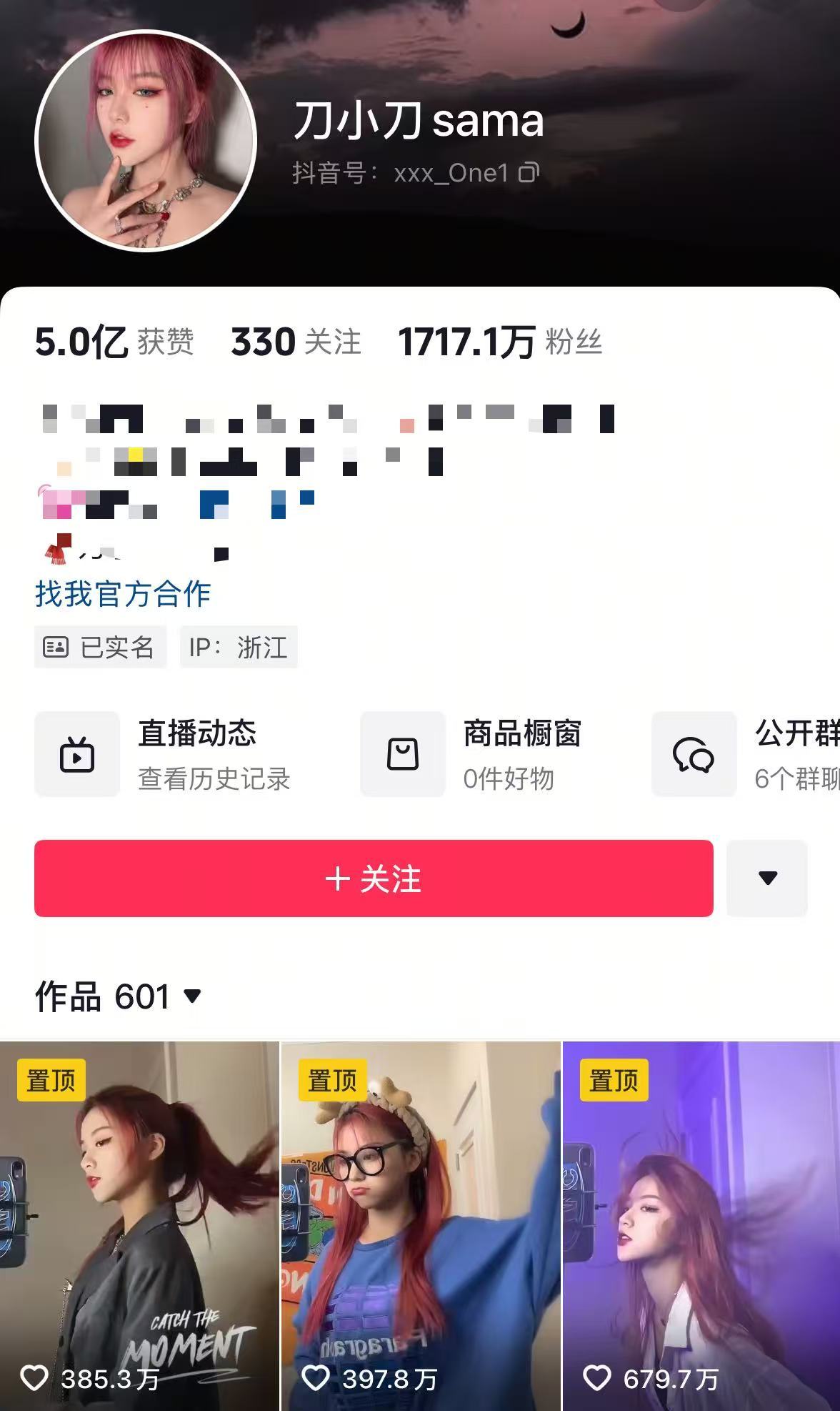 截至发稿前,「刀小刀」 抖音账号粉丝数为 1717.1 万,获赞超 5 亿次。