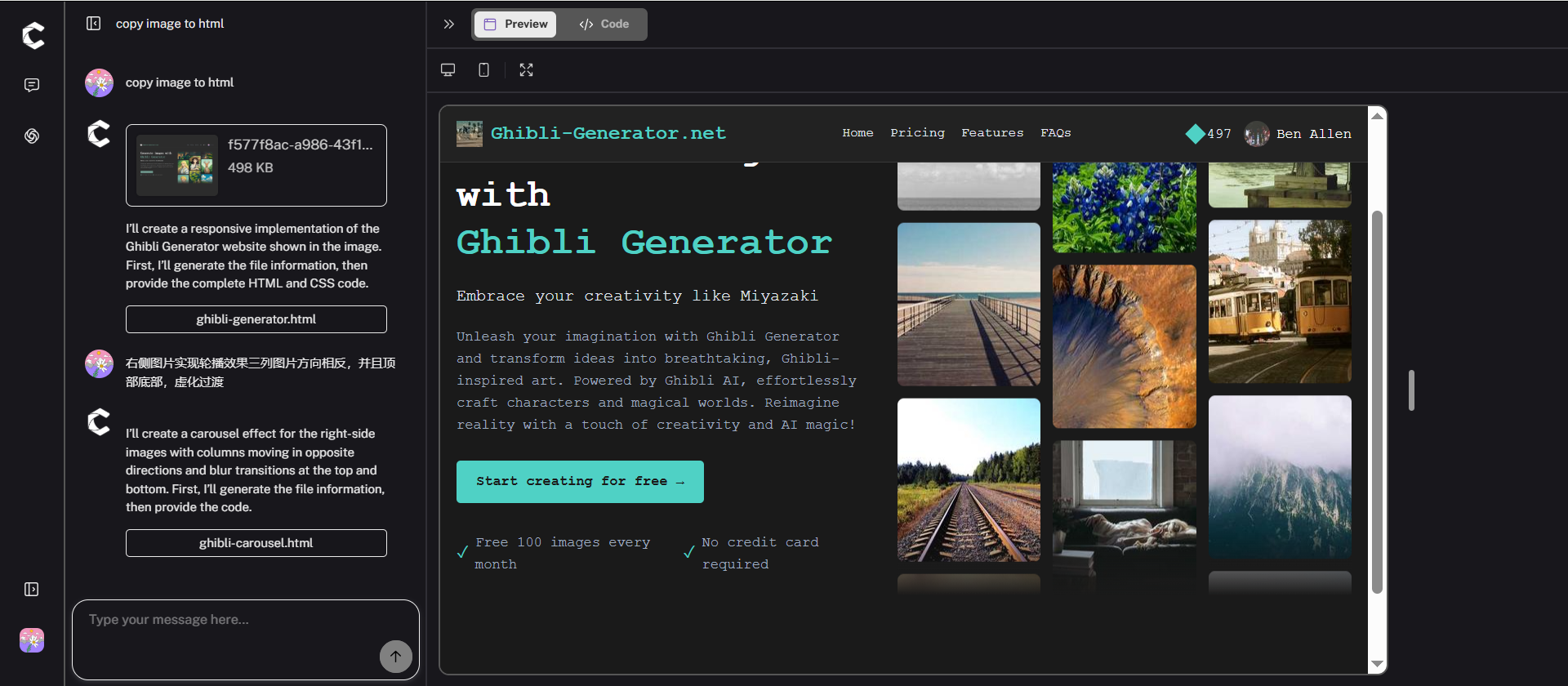 此外,只需通过自然语言提示词就能灵活调整设计细节,如动画、颜色、图片布局样式等,无需手动修改代码,让设计与开发流程更加高效流畅。