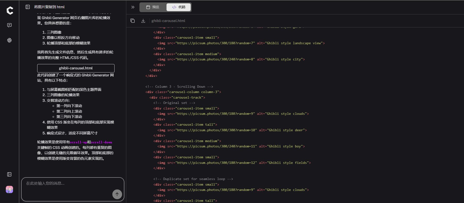 以下是 CloneUI 生成首页滚动图的过程。