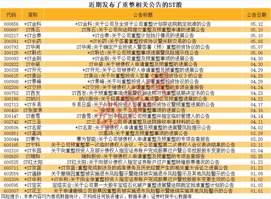 最强ST股10个月涨7倍!资产重组、破产重组ST股名单曝光