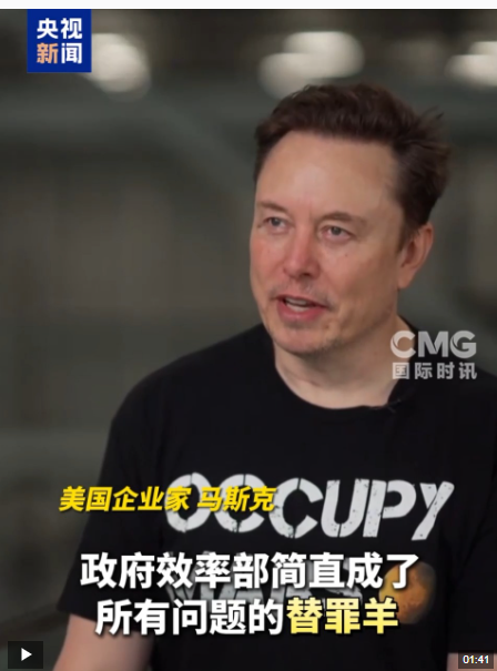 马斯克在采访中表示,他不想公开反对美国政府,但也不想为政府所做的一切承担责任。马斯克称,他所领导的 「政府效率部」 成了一切的 「替罪羊」。