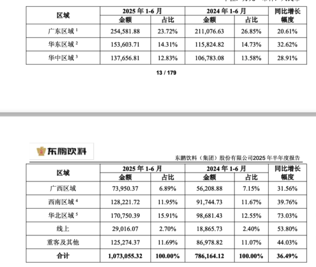 东鹏饮料在财报中指出,营收增长的主要原因是公司在广东区域继续实行全渠道精耕策略,同时积极开拓全国销售渠道,带动 500ml 金瓶及 「东鹏补水啦」 等新品销量增长。