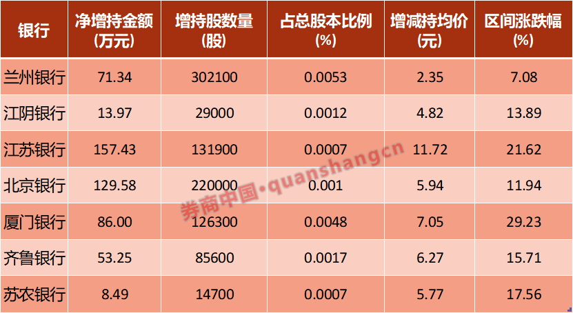 券商中国记者注意到,今年以来,已有兰州银行、江苏银行、北京银行、齐鲁银行、厦门银行等多家 A 股上市银行的管理层增持股票。