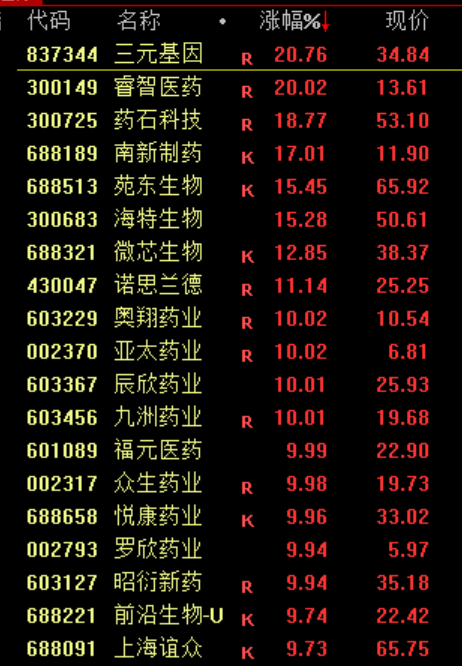 医药股持续爆发,CRO、创新药方向领涨,亚太药业、众生药业等十余股涨停。