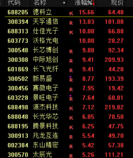 CPO、PCB等算力硬件股继续走强,方邦股份、沃格光电等涨停,中际旭创等多股再创历史新高。