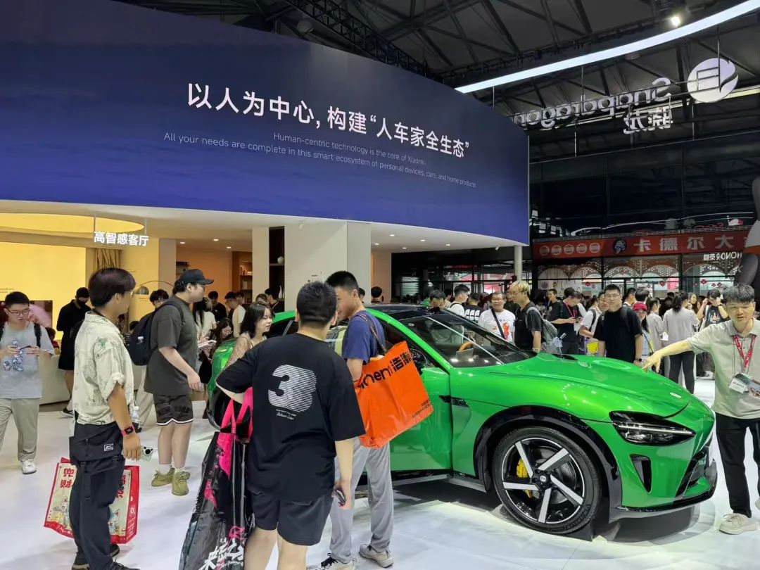 其中人流量最大的莫过于小米汽车。本次小米携 「人车家全生态」 亮相,今年上市的小米 YU7 无疑全场的焦点,鹦鹉绿的一台展车吸引了大批观众拍照,试乘的观众也是大排长龙。