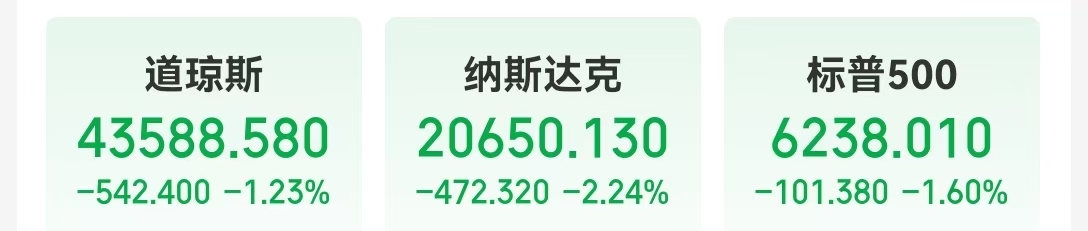 受美关税政策及 7 月就业数据远逊于预期影响。截至当地时间 8 月 1 日收盘,道琼斯工业平均指数收盘下跌 542.4 点,跌幅 1.23%;标准普尔 500 指数跌幅 1.60%,录得自 5 月以来最大单日跌幅;纳斯达克指数跌幅 2.24%,创 4 月以来最大跌幅。美国股市市值蒸发逾 1 万亿美元。
