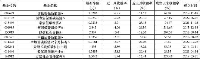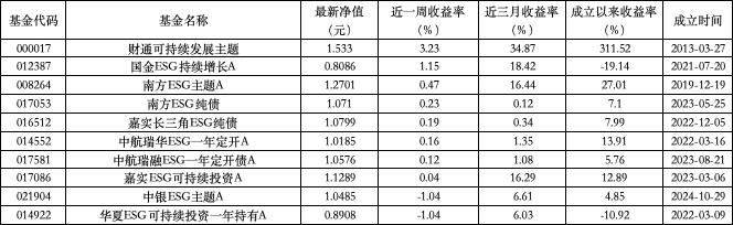 泛 ESG 主题主动型基金收益率周榜 TOP10