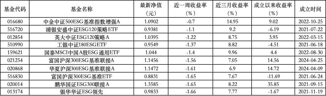 泛 ESG 主题指数型基金收益率周榜 TOP10