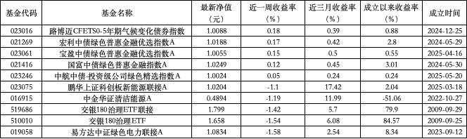 ESG 主题指数型基金收益率周榜 TOP10