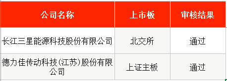 发审委审核方面,上交所、北交所上周均召开新一期上市审核委员会审议会议,拟在北交所 IPO 的长江三星能源科技股份有限公司 (下称 「长江能科」)、拟在上证主板 IPO 的德力佳传动科技 (江苏) 股份有限公司 (下称 「德力佳」) 均成功过会。