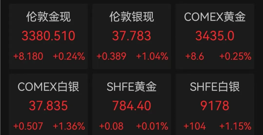 深夜,国际贵金属期货普遍收涨!