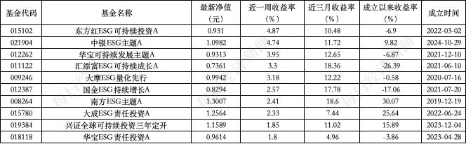泛 ESG 主题主动型基金收益率周榜 TOP10