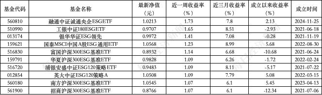 泛 ESG 主题指数型基金收益率周榜 TOP10