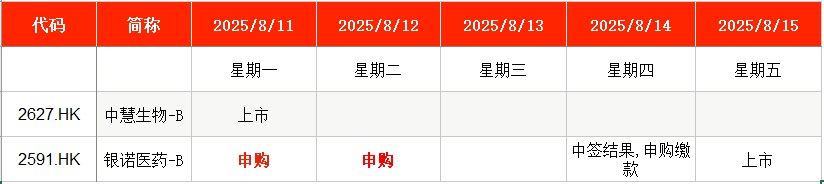 Wind 数据显示,本周 (8 月 11 日至 8 月 15 日) 港股的银诺医药-B(02591.HK) 在周一和周二申购。