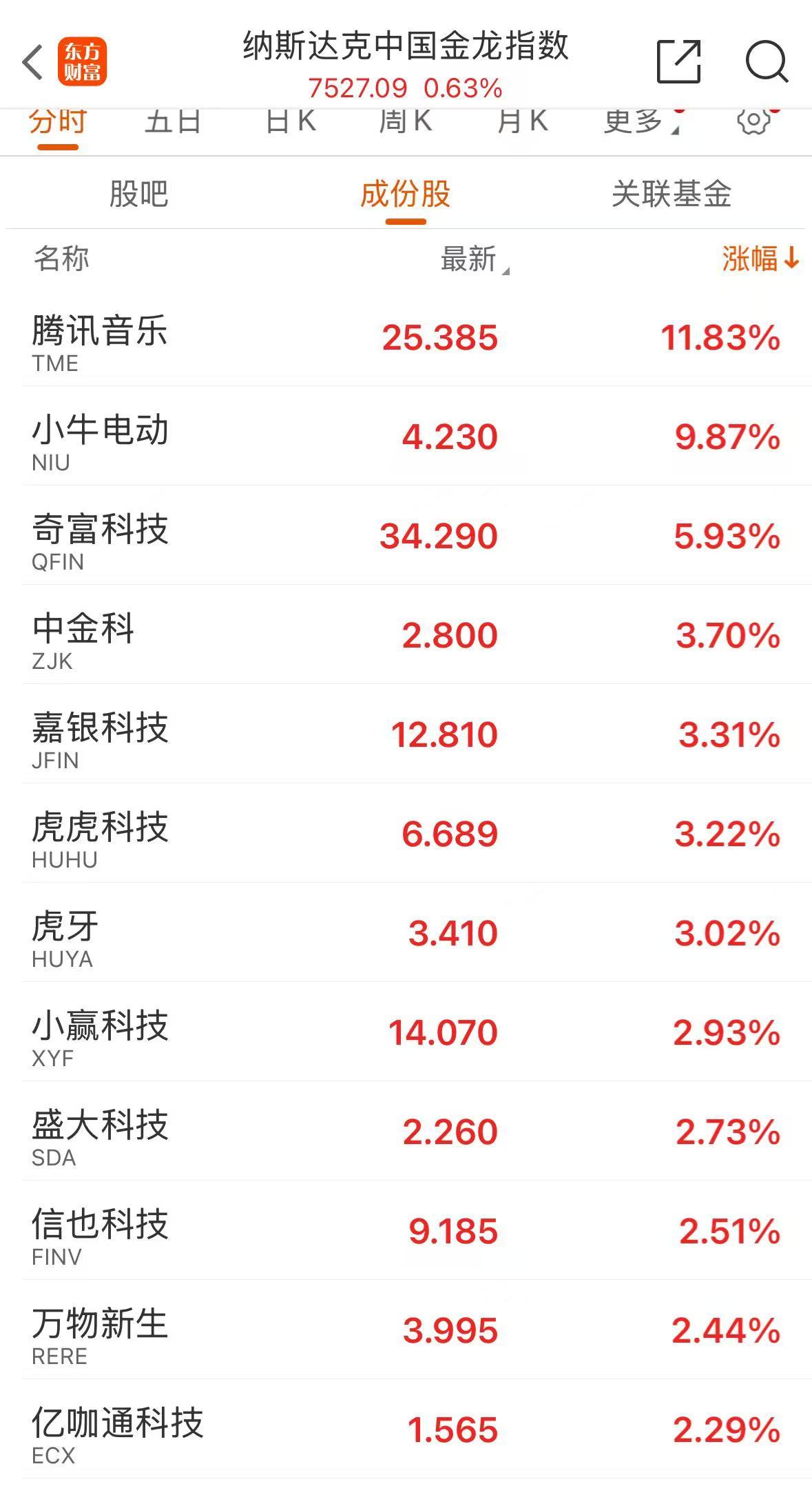 中概股也多数上涨。截至发稿,纳斯达克中国金龙指数涨幅为 0.44%。