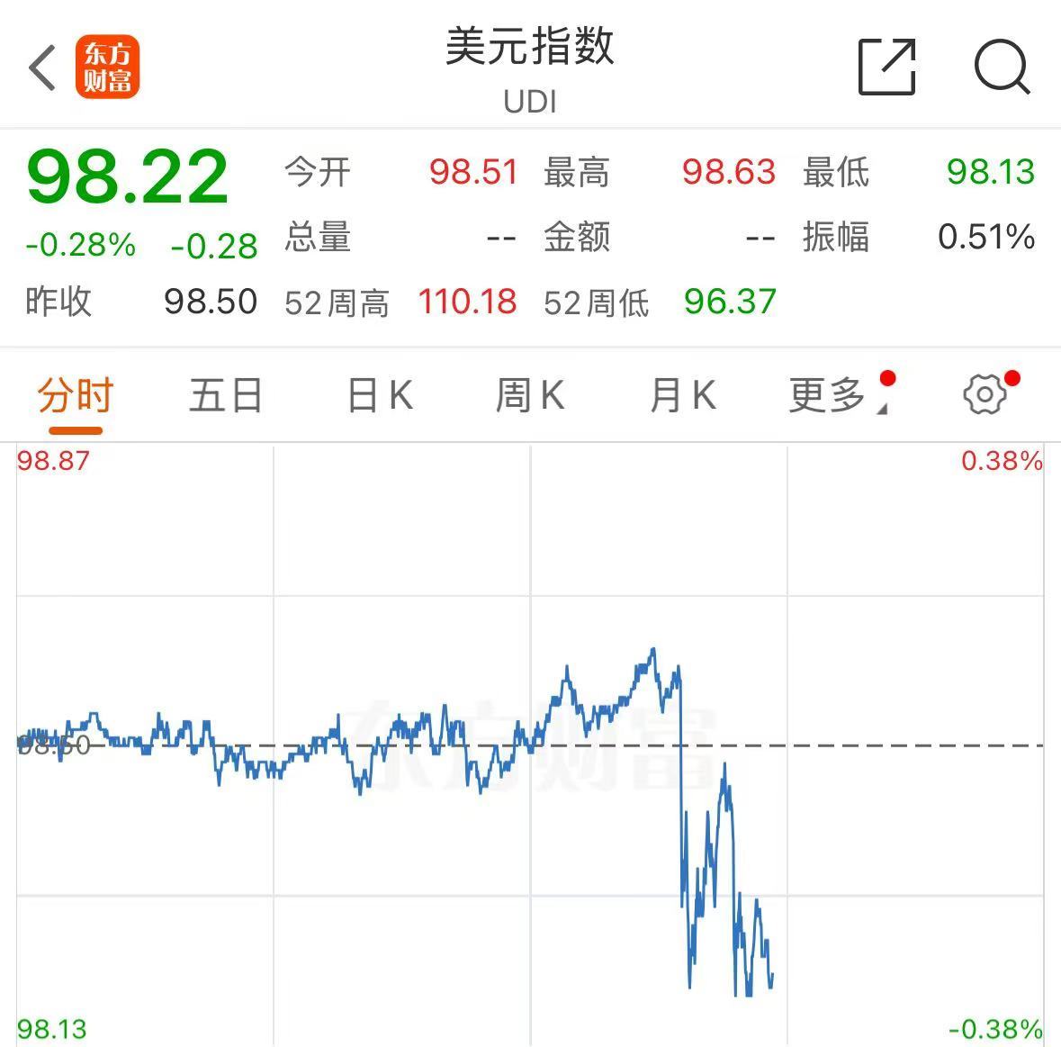 美元指数短线跳水。