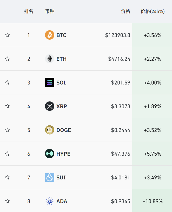 8 月 14 日,比特币突破 12.4 万美元/枚,再创历史新高。