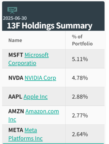 根据美国证券交易委员会 (SEC) 最新披露,近日,包括摩根大通、先锋集团、贝莱德等全球金融巨头纷纷披露 2025 年第二季度持仓报告 (13F)。