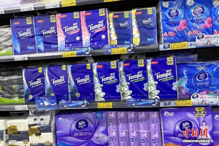 最近,中新网记者走进北京多家超市,卫生纸类打折已成常态。在丰台区某超市,将近一半生活用纸产品都贴上了促销标签。