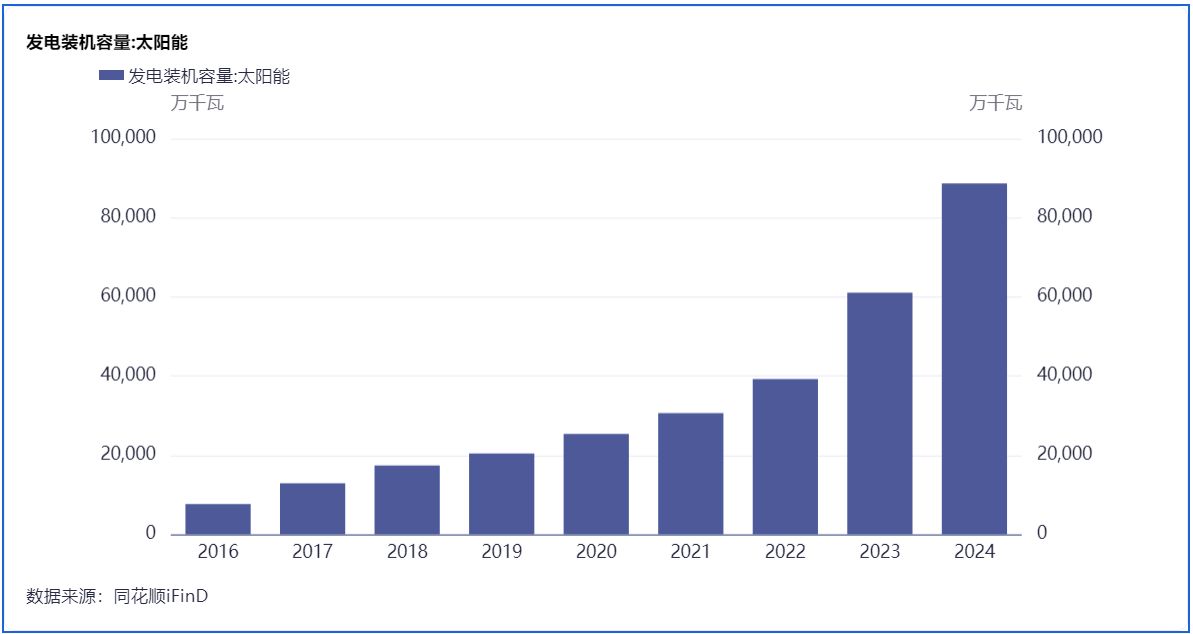 截至 2024 年,中国太阳能发电累计装机容量达 8.9 亿千瓦