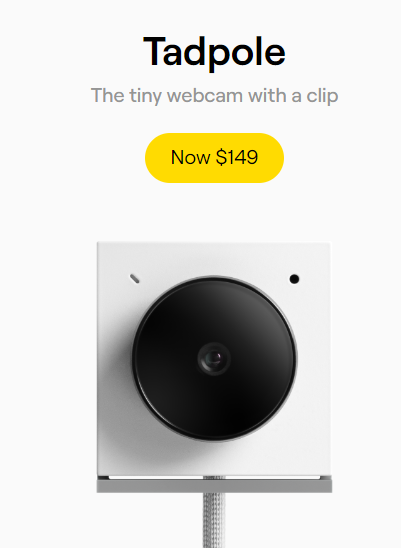 Opal 的旗舰产品是一款售价 149 美元的网络摄像头,名为 Tadpole,如上图所示,夹在笔记本电脑显示器上。它是一个 1.25 英寸的正方形,重量大约相当于一节 5 号电池。Tadpole 能够录制高达 3840 像素 x 2160 像素分辨率的视频,Opal 表示这种清晰度通常只在更昂贵的网络摄像头才能实现。
