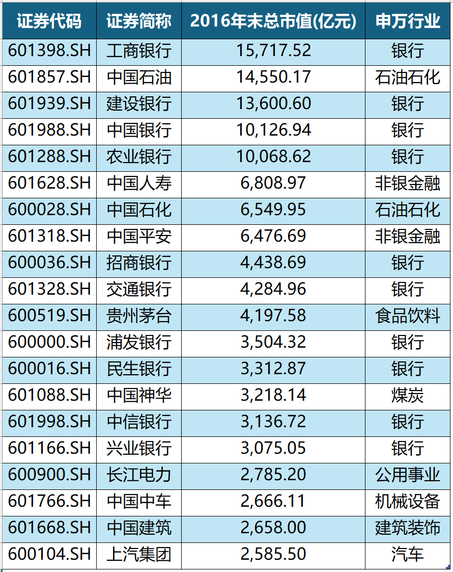 反观 2016 年年末,彼时 A 股千亿元市值公司仅有 67 家,且以银行、保险、石油等传统行业为主,而高端制造业公司不足 10 家。市值前 20 名榜单中,银行、保险、石油等传统企业 「霸榜」,仅有上汽集团是唯一跻身前 20 榜单的汽车企业。