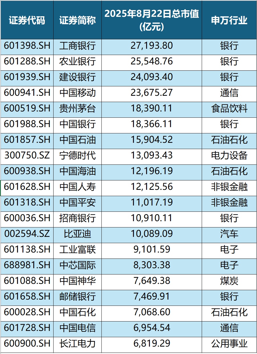 2025 年 8 月 22 日 A 股上市公司总市值 TOP20