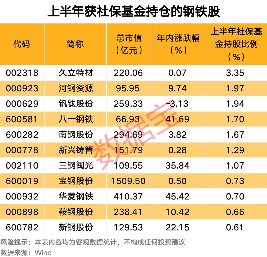 11 只钢铁股获社保基金持仓