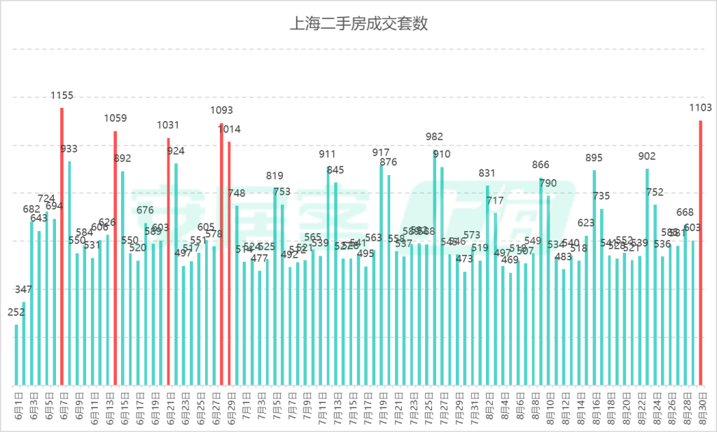 新房市场多点开花的同时,二手房市场也迎来显著回暖。据安居客上海监测的数据,8 月 30 日,上海二手房 (含商业) 网签成交 1103 套,日成交创下自 6 月 29 日之后的新高,时隔 60 天成交再次破千。截至 8 月 30 日,上海 8 月二手房累计成交 19002 套。