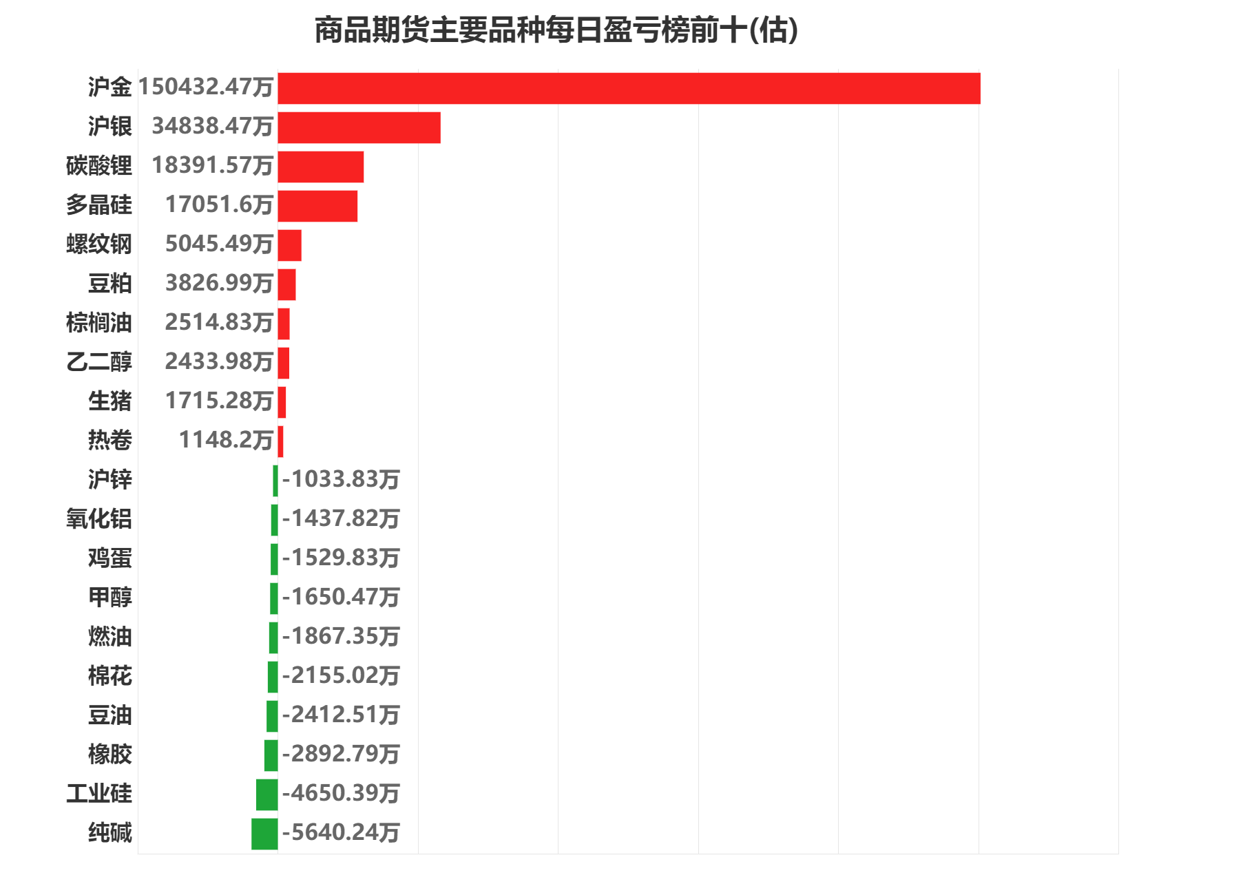 今日商品期货上榜机构席位中沪金盈利第一,为 150432.47 万元。
