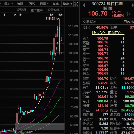 捷佳伟创股价走势 图片来源:东方财富