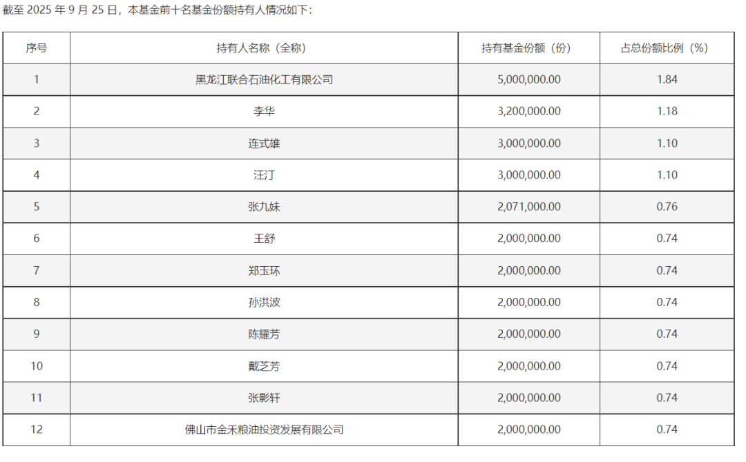 具体来看,永赢中证红利低波动 ETF 上市交易公告书显示,截至 9 月 25 日,前十名基金份额持有人包括黑龙江联合石油化工有限公司、佛山市金禾粮油投资发展有限公司。类似的还有易方达上证 380ETF,截至 9 月 23 日,前十名基金份额持有人包括深圳市拓保软件有限公司、中关村丽憬智慧健康信息化创新研究院。